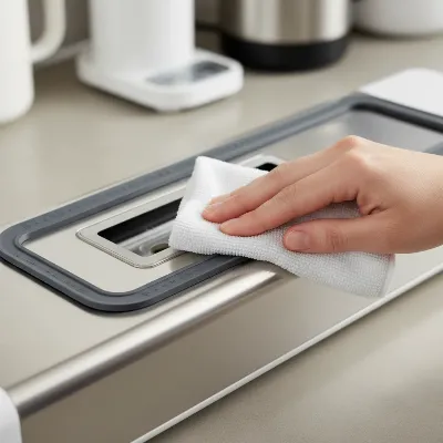 This area is often the main source of odors. Dampen a clean microfiber cloth with warm, soapy water. Carefully wipe the heat-sealing bar and the vacuum channel (the trough where air is extracted). For tight corners and stubborn residue around the sealing strip, use a cotton swab dipped in soapy water. Be gentle around the heat strip to avoid damage. Food residue here can lead to weak seals and strange smells.